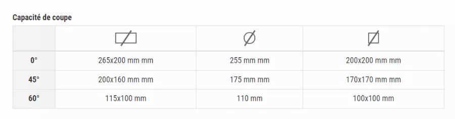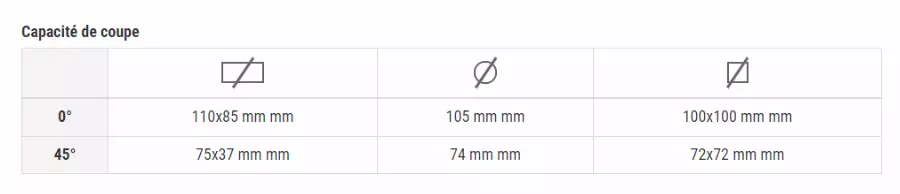 - Angle de coupe réglable de 0° jusqu’à 45° gauche