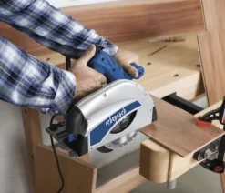 – Cette scie permet également de réaliser des coupes parfaites sans utiliser le rail.