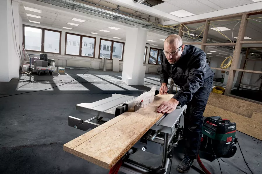 - Scie circulaire de table mobile compacte avec une bonne capacité de coupe et un confort de travail élevé